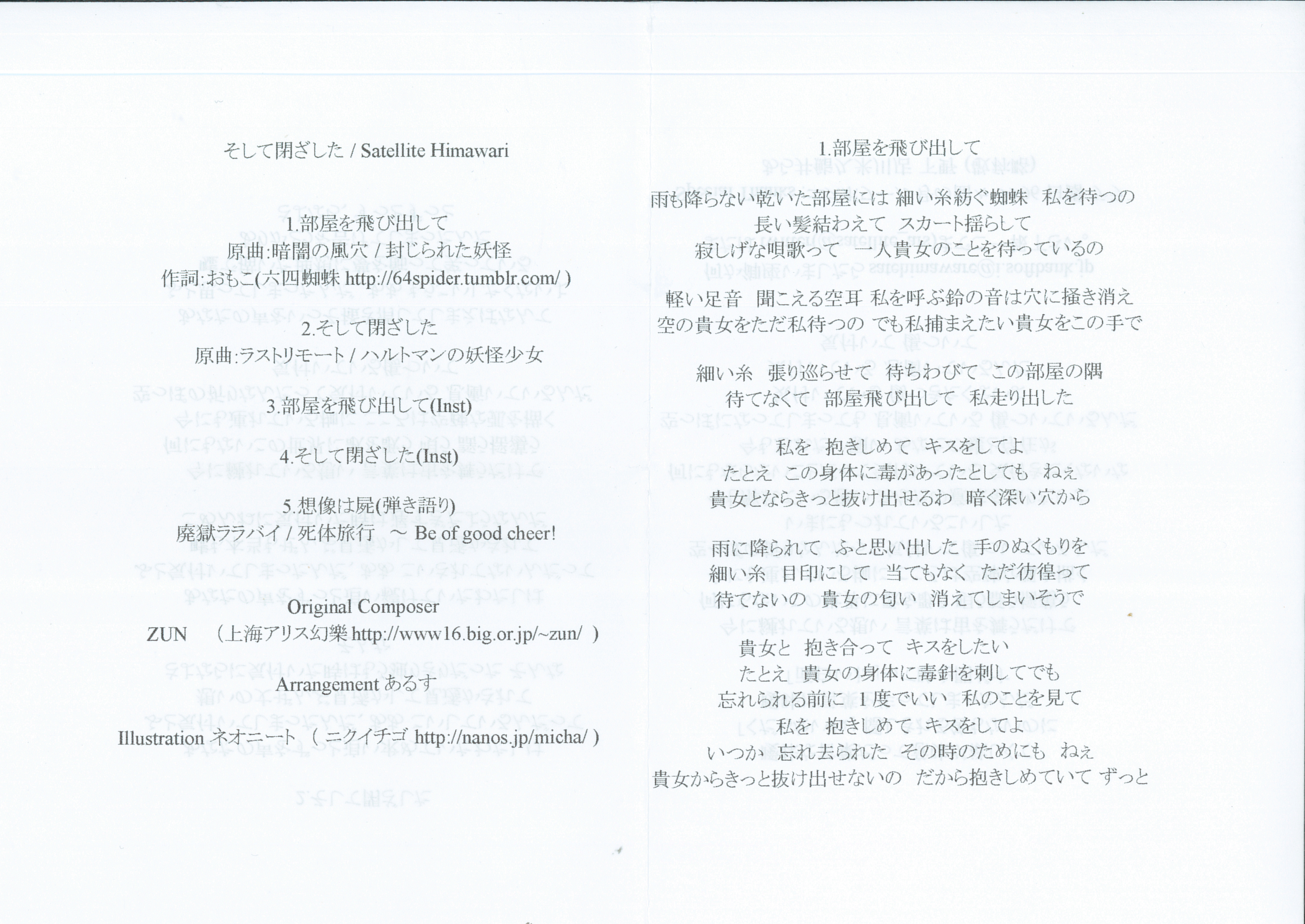 [音乐] (C88)[自购][网盘][Satellite Himawari]そして閉ざした[WAV+CUE+JPG] |