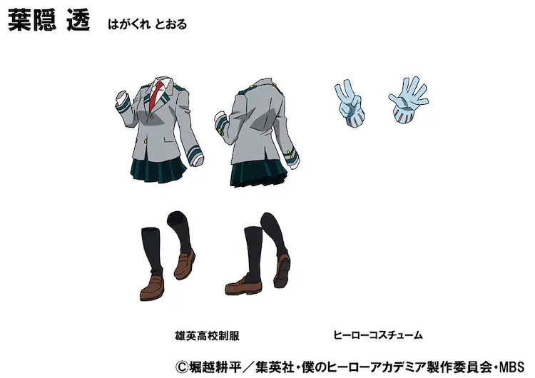 《我的英雄學院》葉隱透擁有個性「透明」,戰鬥時僅露出手套與鞋子,雖說在作品中大多時間都沒有露出真面目,不過當時就吸引不少創作者繪製她的插圖,後續作品中揭露的她的臉龐時,也讓不少粉絲感到驚喜,果然是可愛又嬌羞的女孩子 XD。