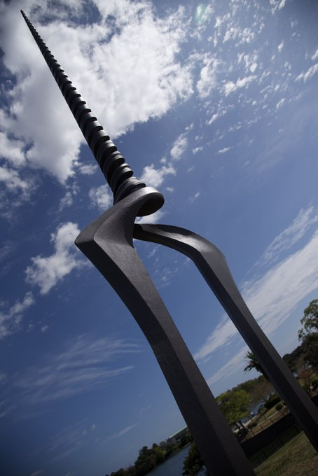 7公尺高「朗基努斯之槍」由宇部市擁有高度鑄造技術的宇部鋼鐵公司,結合地方政府資源攜手打造,採用當地廢棄汽車的車身等鋼鐵廢料製作。