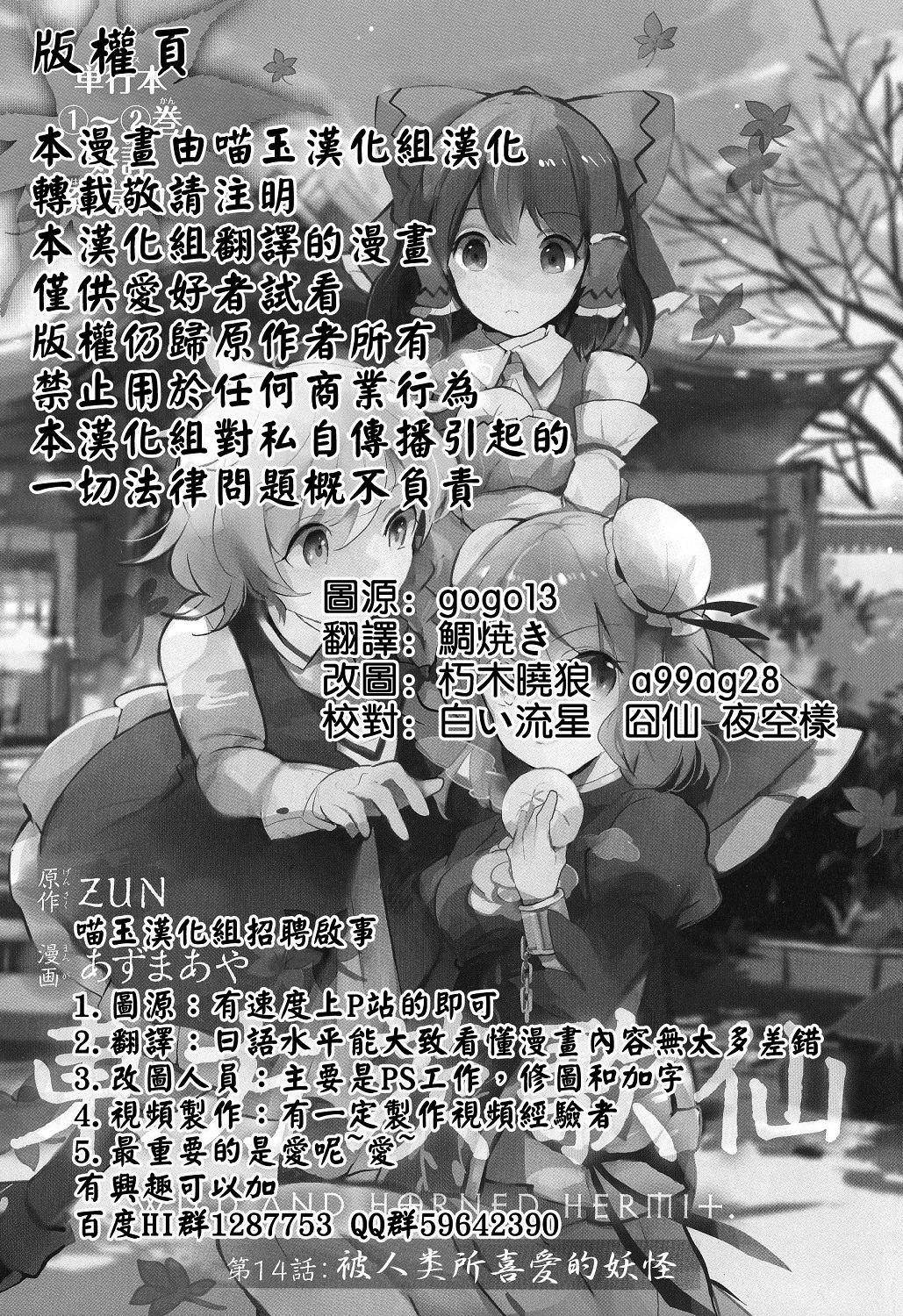 [官作汉化] 【喵玉汉化】东方茨歌仙 第14话 被人类所喜爱的妖怪