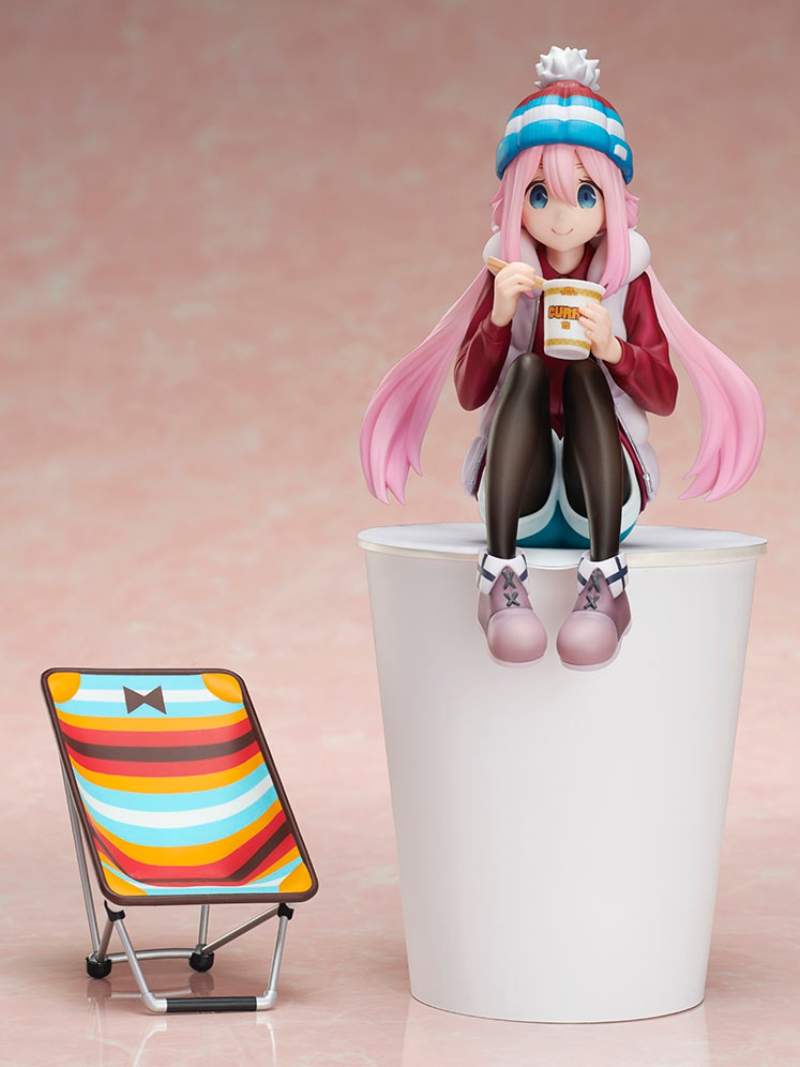 《搖曳露營△》1/8比例高級泡麵蓋 Figure 頭頂到台座全長約130mm,參考售價為12,800円,商品預約期間自即日起至2019年7月11日,11月發售預定。→傳送門←