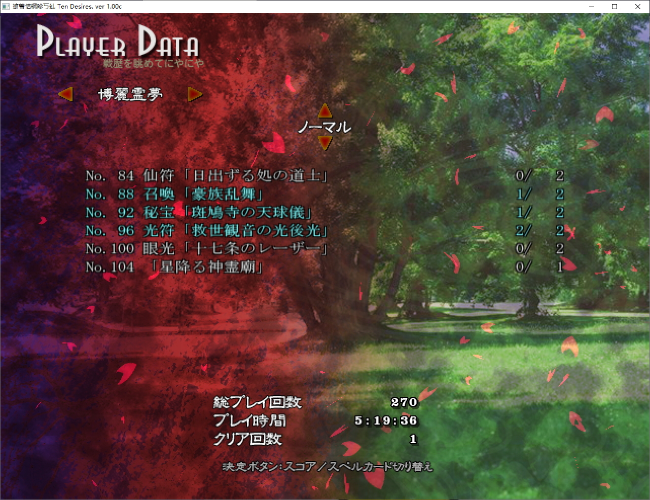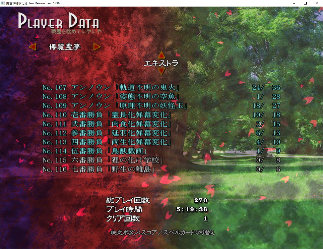 这次也和风神录那时一样打N基本没背板,除了熟悉妖梦稍微花了点时间外,其于基本都是速通