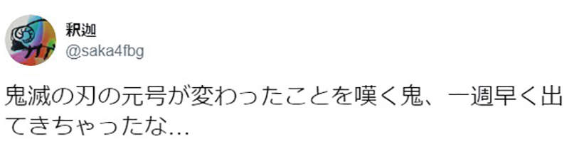 「"鬼滅之刃"中叫喊著年號變了的鬼,早了一星期登場啊……」
