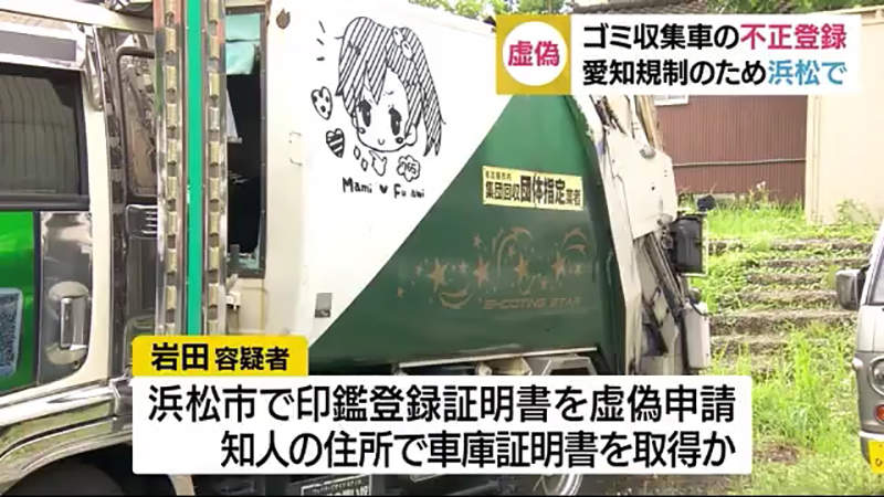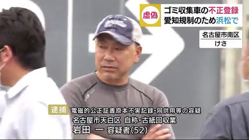 日本愛知縣與隔壁靜岡縣的地區新聞,最近紛紛報導這位52歲男子岩田一在登記垃圾車上動手腳的犯罪事件。由於愛知縣名古屋市對於老垃圾車的廢氣排放限制比較嚴格,所以這位車主在今年初就試圖偽造文書,將垃圾車登記到隔壁的靜岡縣濱松市。他在事情曝光之後被警方逮捕,垃圾車也遭到扣押……