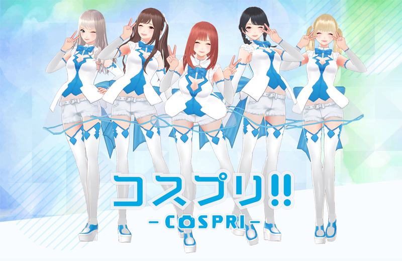 《COSPRI!!》是採用了多名知名 Coser 與模特兒包含「五木あきら」、「うらまる」、「シスル」、「やなぎばころん」等人,所打造之戀愛模擬遊戲。遊戲以距今不久後的「秋葉原(アキバハラ)」為舞台,玩家可以體驗與 3D 模型化後的 Coser 們談戀愛,或是為她進行打扮的換裝要素等樂趣。值得一提的是,遊戲也支援 AR 攝影的功能,並讓玩家將拍下的照片分享至社交網站上。
