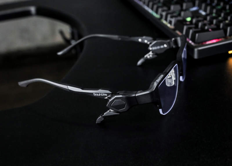 鏡片的話採用半框式造型,這樣的好處是你不會感到隱隱約約有條線擋你視線,視野上可以更加清晰清楚,還有鏡片當然也採用了藍光鏡片,可以幫你擋掉藍光讓你用電腦時眼睛較不會酸,而且這是處理過的透明鏡片,因此遊戲的色彩也是呈現漂亮的原色,不會讓你覺得掛了一層濾鏡的感覺