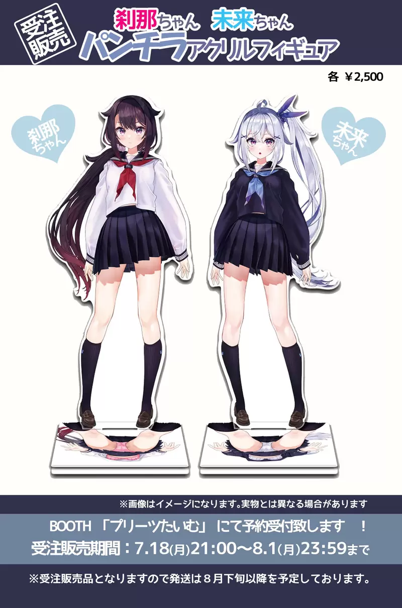 ぬんぬ(Nunnu)設計出這款露內褲壓克力人形立牌,藉由底座印刷營造出反射內褲的效果,相信能夠大大滿足渴望偷窺內褲的變態們了!