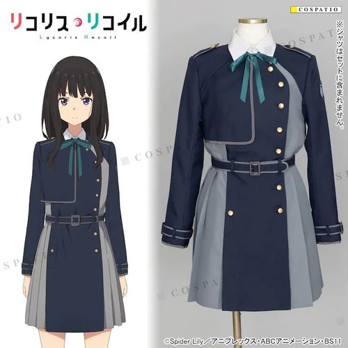 Lycoris Recoil 莉可麗絲》錦木千束與井之上瀧奈制服,目前預定將於 2023 年 1 月發售,建議售價為 49500 日圓(含稅),尺寸有女性尺寸的 S、M、L、XL、XXL。配合本次服裝的推出,官方也在 COSPATIO 秋葉原以及大阪店展示制服的開發樣品。