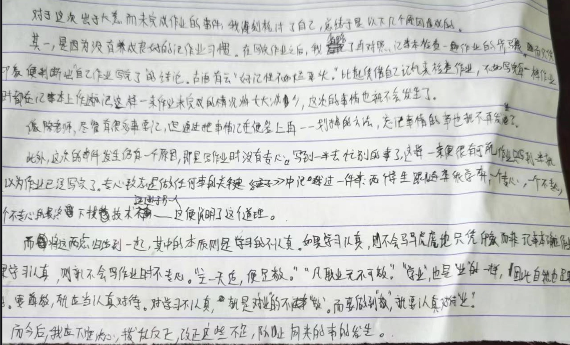 内容是有次忘记写语文作业写的检讨(当时老师还在讲议论文的时候当成范文在全班面前通读了一遍还一本正经地讲评,鬼知道我是怎么熬过那段时间的)