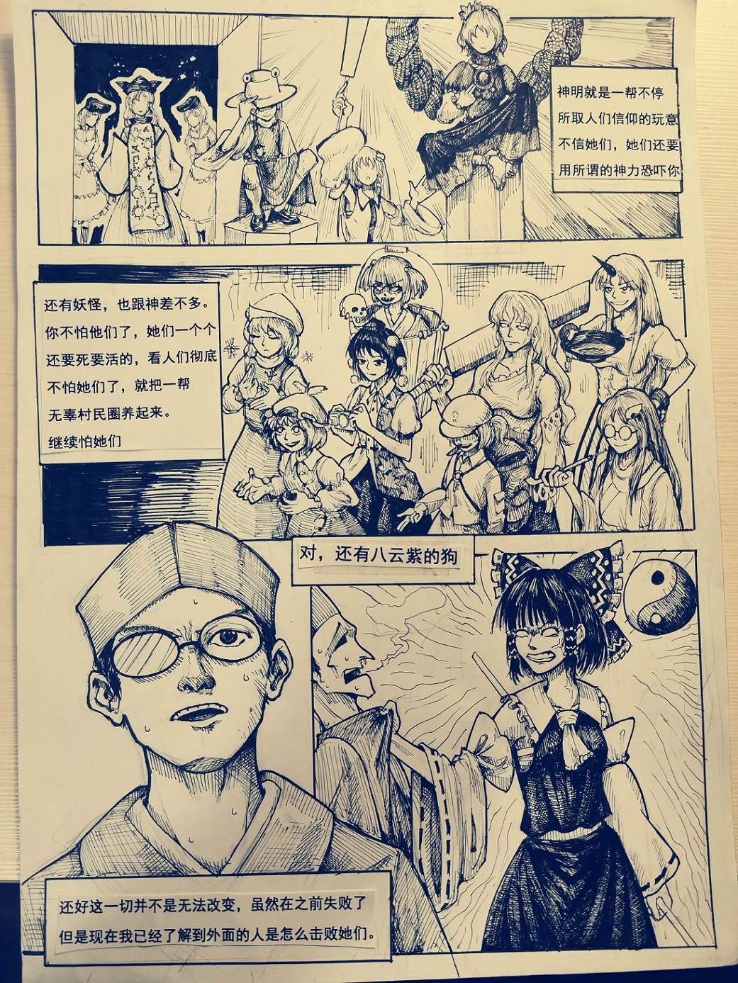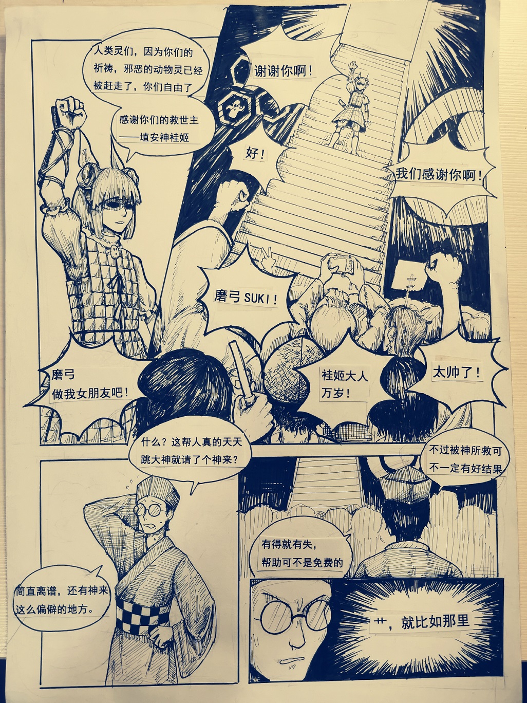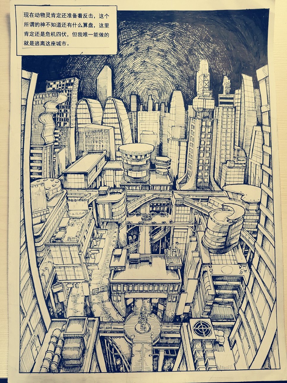 在2020年初就把这几张草稿画好了,但是我的学术水平和绘画水平根本就不够整科学与幻想这种宏大的玩意。当时环境也不太好,我自己也十分没有自信(要画furry和大城市背景)虽然想着:画完可以去试着投稿华胥三绝(当时在征稿,后来觉得这本杂志太牛逼了肯定不行),最后画的十分痛苦就画不动了就一直放到了现在。因为A4打印纸上的铅笔稿越来越难擦掉,加上打印纸本身也有磨损,所以最后还是画出来了