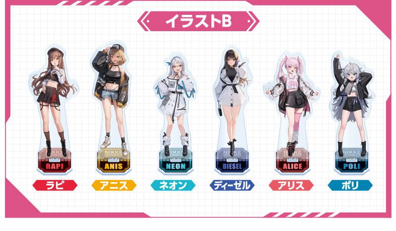 此外,5 月 30 日起日本全家限定商品「勝利女神:妮姬 Crunch Chocolate(勝利の女神:NIKKE クランチチョコレート)」(含税 810 円)也將發售,隨機附贈一張原創色紙,共有 6 種。「ランダムブロマイド」則將於 6 月 20 日發售,而使用 12 種合作插畫的壓克力架則會在 6 月 30 日發售。