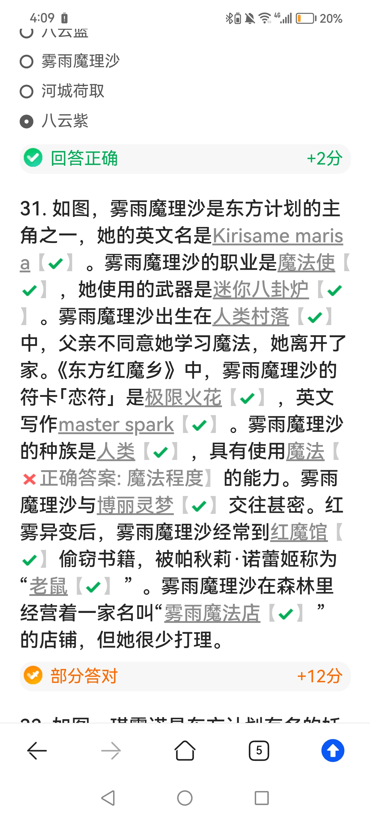 觉得错的正常的大概是29题,那里不是很懂弹幕规则(因为没发过弹幕)