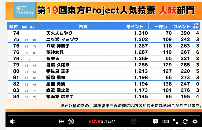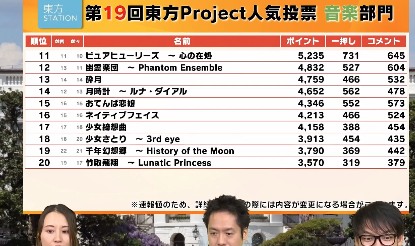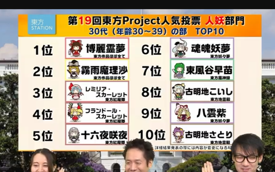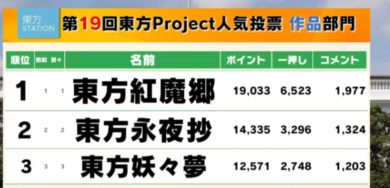 第19届东方人气投票结果公布!!