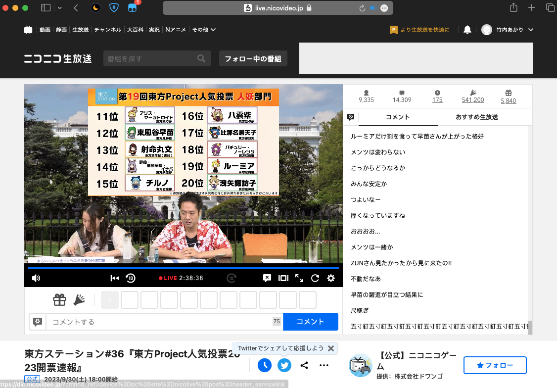 (早苗升2名绝对是本子的缘故啦——nico直播时的弹幕
