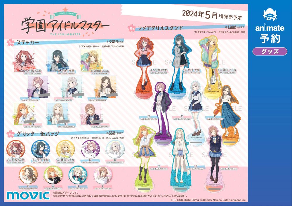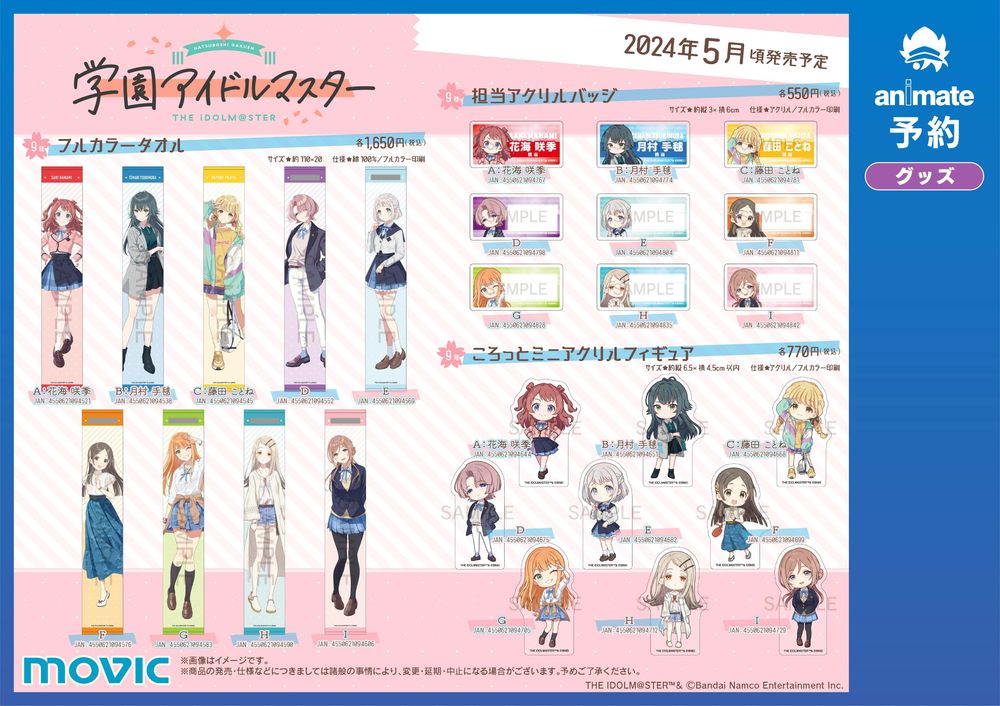 偶像大師》系列完全新作《學園偶像大師(暫譯,学園アイドルマスター)》於(3/11)宣布,一系列官方周邊已自即日起於 Animate Online Shop 開放預購。