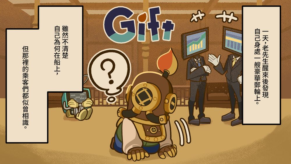 此外,介紹《贈禮:沉船求生》的世界觀和遊戲特色的四格漫畫已在 Steam 頁面上開始連載;預計一天公開一則,一共 6 則。