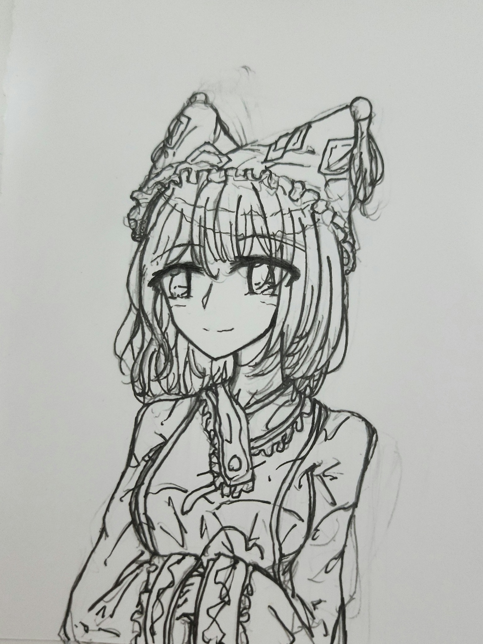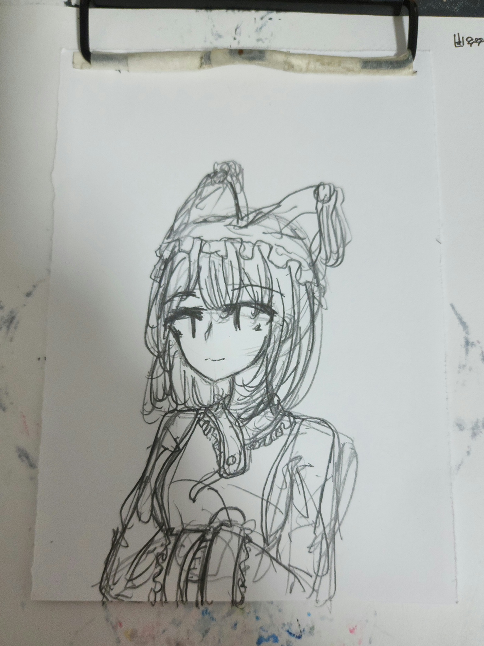可以看到我的草稿和线稿都缺了一个东西,我上色的时候越上越奇怪,然后加上去了