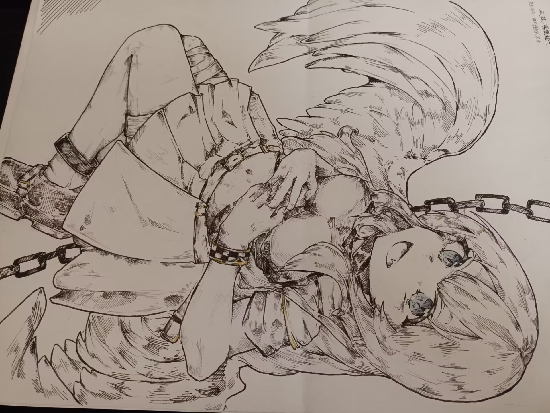 “古老的疯狂与骄傲...”她轻声诉说......而内心犹如本性的傲慢与疯狂向她招手,不断将她带入那源自血脉的深渊,不做抵抗投入了那一切。鸢鸟的翼张开,灰白的眼眸中夹杂着泪水那是她对爱的渴望。