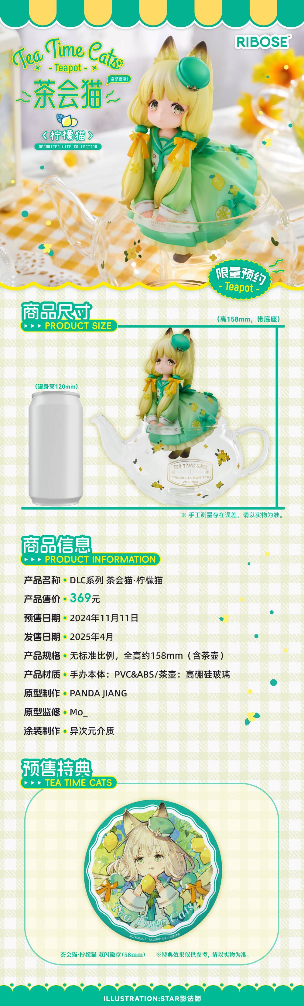 【情報】RIBOSE《茶會貓》DLC系列 茶會貓‧檸檬貓 15.8cm 11月11日開訂