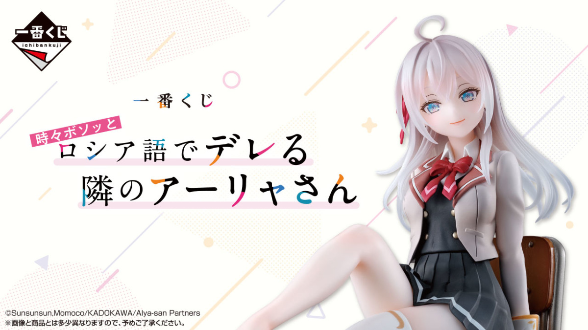 日本 Bandai SPIRITS 公司旗下抽抽有獎的超人氣「一番賞」(一番くじ)系列正式公開了人氣輕小說改編動畫《不時輕聲地以俄語遮羞的鄰座艾莉同學》主題的新商品——「一番賞 不時輕聲地以俄語遮羞的鄰座艾莉同學」的全品項,參考售價為每抽850日圓,預計於2025年06月28日開抽!