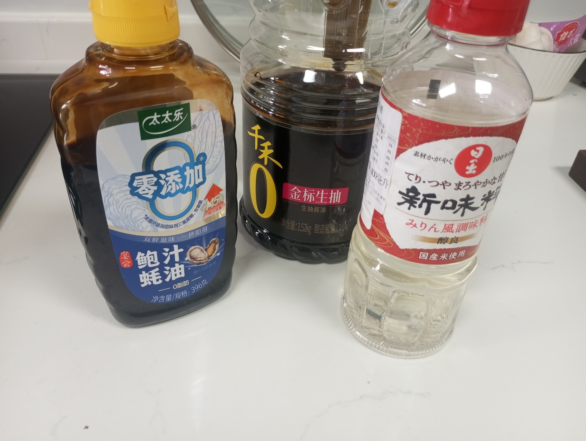 调味料则是这些:生抽、蚝油、味淋,味淋(日本甜料酒)很重要,提供了肥牛饭很大一部分的风味,味正不正就看放没放味淋了,这东西就算进口的一瓶也十几块左右,和国产料酒差不多价,不贵;