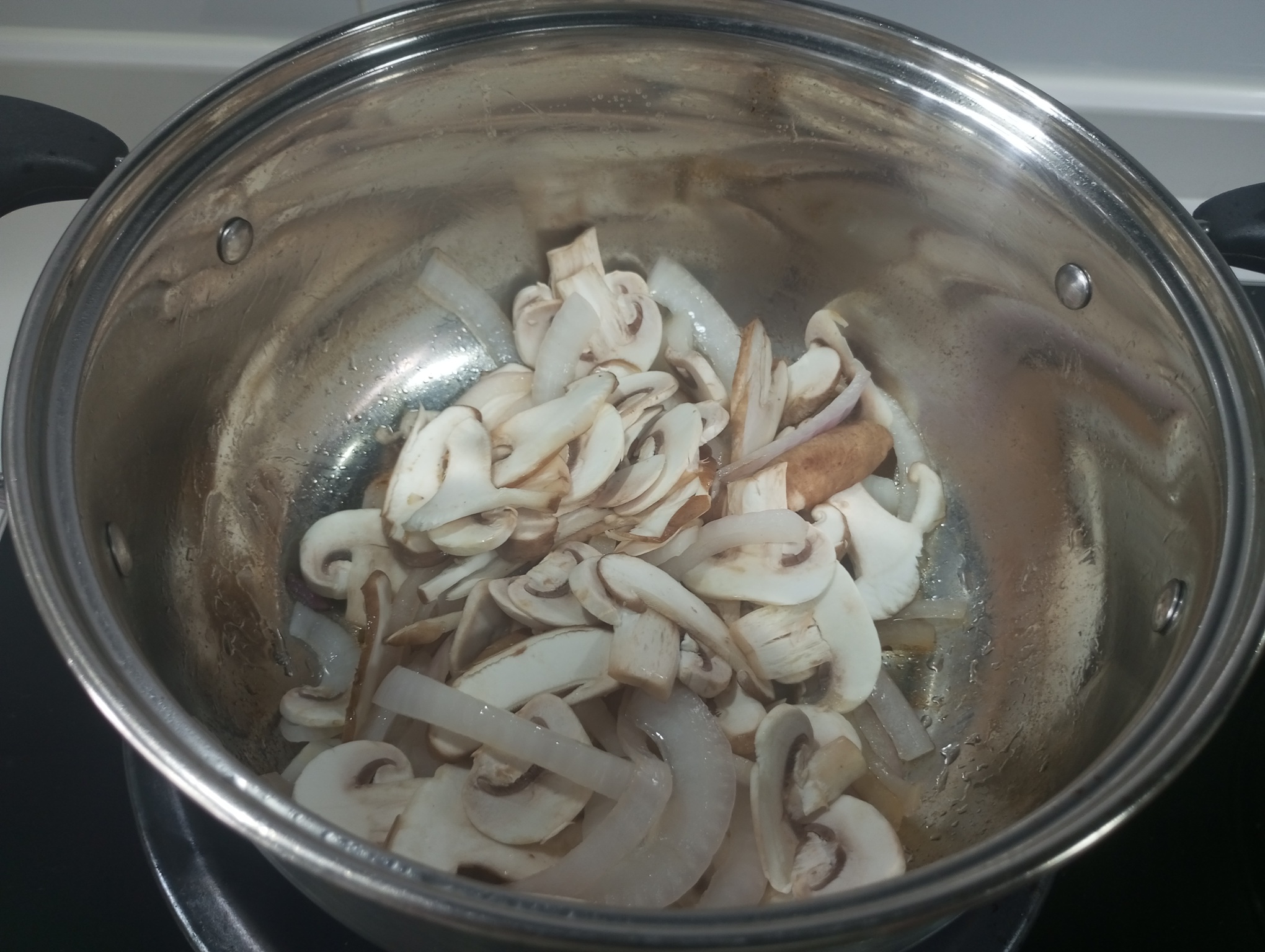 加入菇继续翻炒,记得要小火不能急,如果锅里油不多了可以适量加点油,菇挺吸油的容易干,
