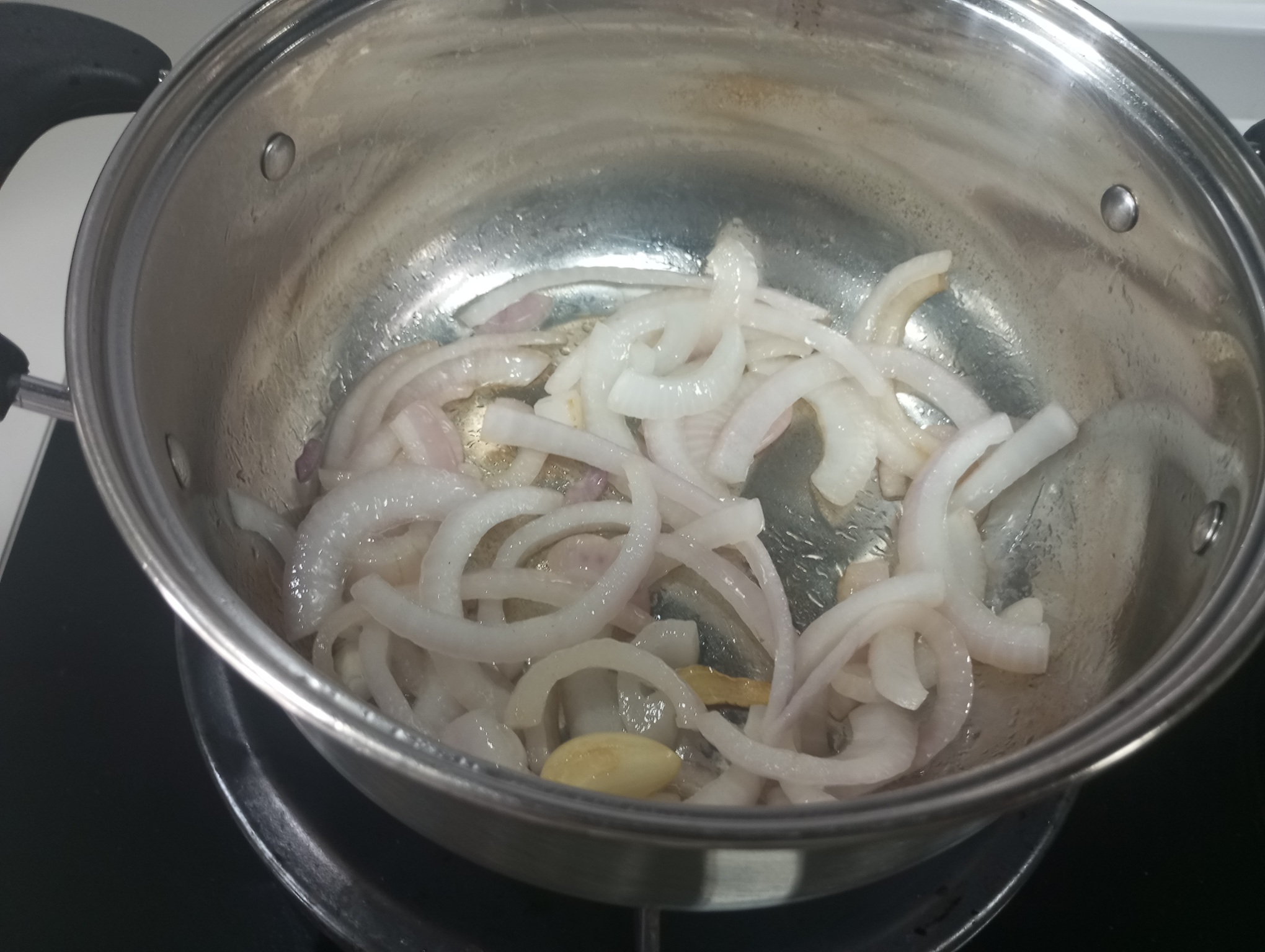 翻炒至洋葱发软,微微焦黄,