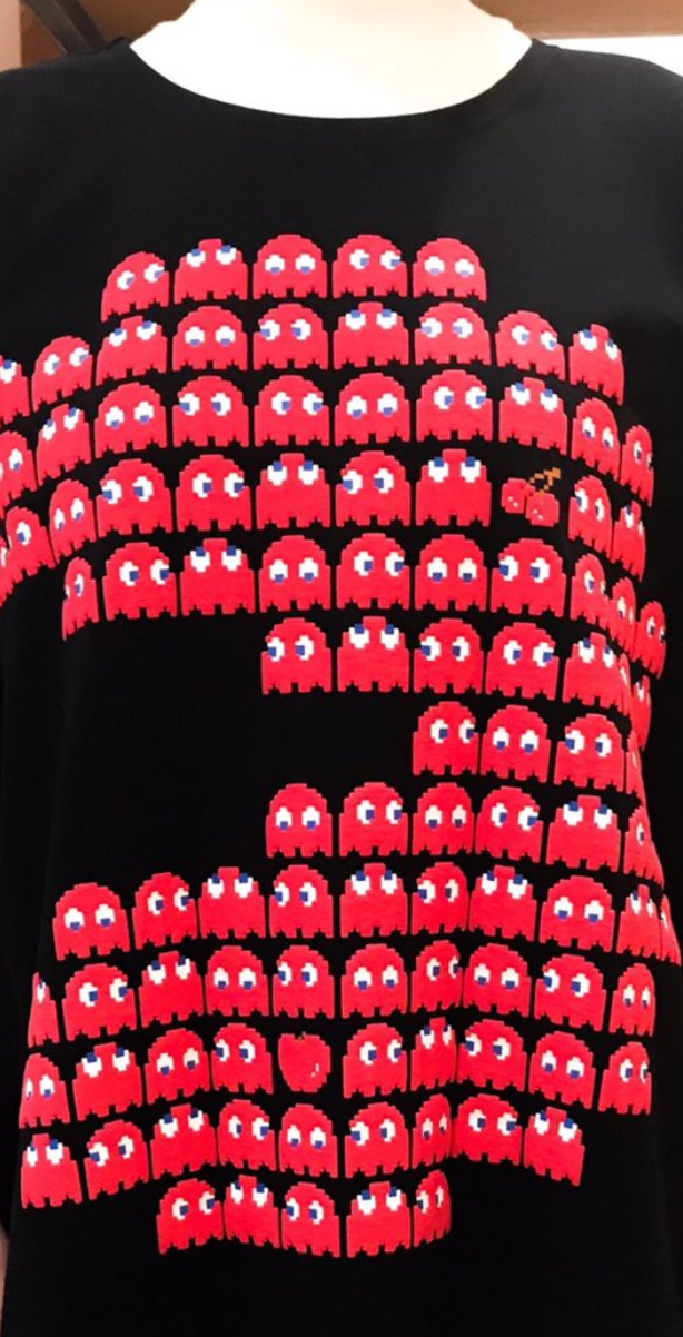 根據推主表示,這些《小精靈 Pac-Man》幽靈的圖案,原本應該是用發泡材質印上去的,因為沒注意使用的去漬粉成分,應該是放入清洗後把材質都溶解掉了,出來僅剩下眼睛的部分,整格圖案變得超特別,連櫻桃都只剩梗,這到底是該哭該笑,完全是不同的衣服阿 www。