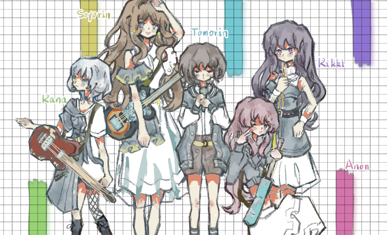用上了我自制的格子素材,做出手账效果(代表色想到了常见的那种透明便签)