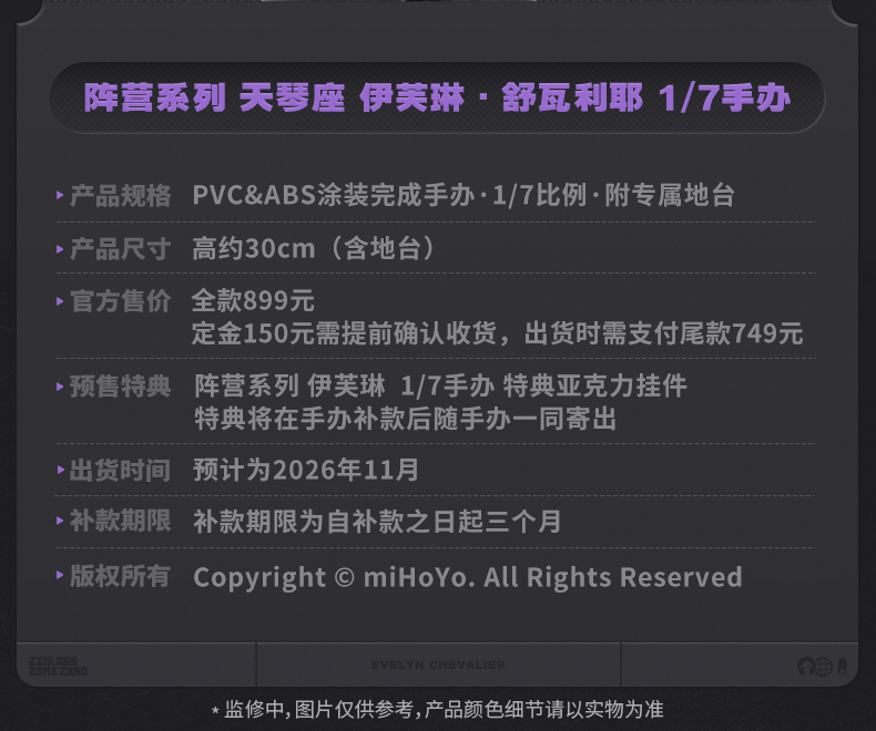 【情報】APEX TOYS「絕區零」陣營天琴座 伊芙琳 1/7 比例模型 開訂