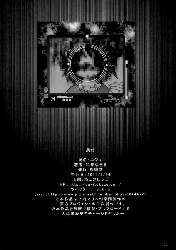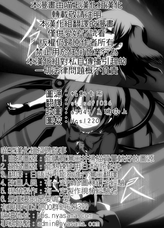 大概是两年前,我刚进喵玉不久的时候,这本子最初是一个朋友从那个早就离开喵玉的老前辈手里拿到的图源,求了很久的汉化都没人理,于是当时还不成熟的我就帮她翻了,最初拜托了当时还在组里的银条改图,基本快改完的时候,贴吧那边跳出来另一个其他汉化组的人,说可以改图,因为之前银条也被人说改图技术不好,所以让出了本子,毕竟本来也没打算做喵玉汉化,只是改给那个很喜欢小伞的朋友看的。但后来,那个我已经忘了是哪个组的改图的家伙就没音信了,而之后不久,银条也洗手不干了,这本子就这样拖了很久,直到去年夏天,那位朋友,刚刚结束中考不久也结束了她的人生。所以又想到了这本本子,虽然她生前没能看到这本汉化,但我还是觉得这样做完它比较好。由于去年下半年开始我也忙得不可开交,文本没怎么改就交给了乌鸦,所以说实话,这能不能算是一个能让人满意的译文我也不确定。在之后乌鸦也因为个人的原因坑了好久,不过总算是做出来了吧 |