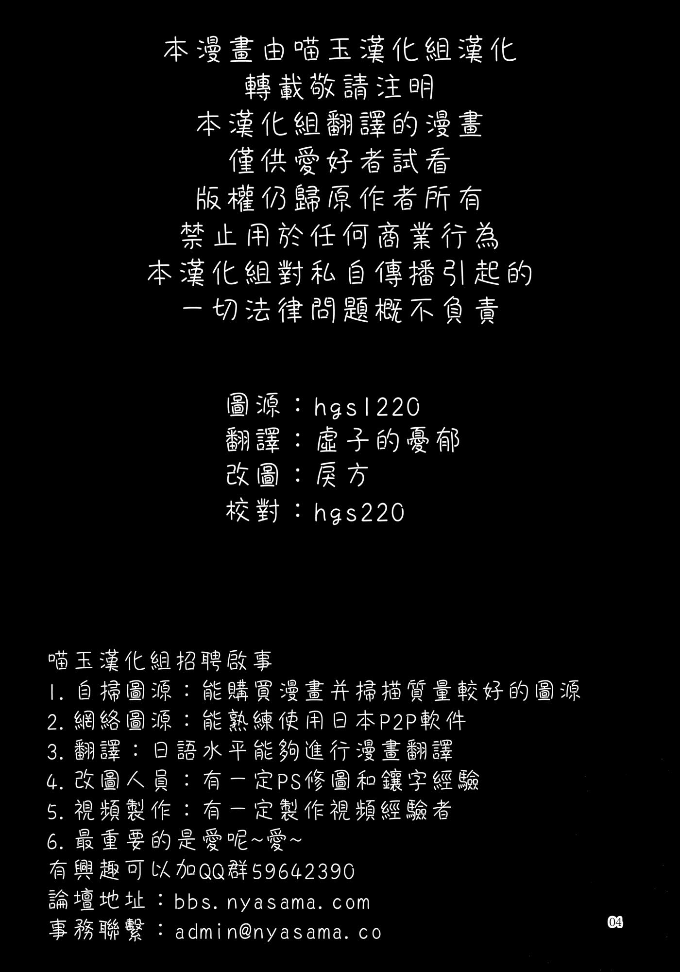 请遵守喵玉殿版规。 Visitors to Nyasama must obey its regulations. 禁止转载至e-hentai或者exhentai。 Any repost to E-hentai or Exhentai is prohibited.