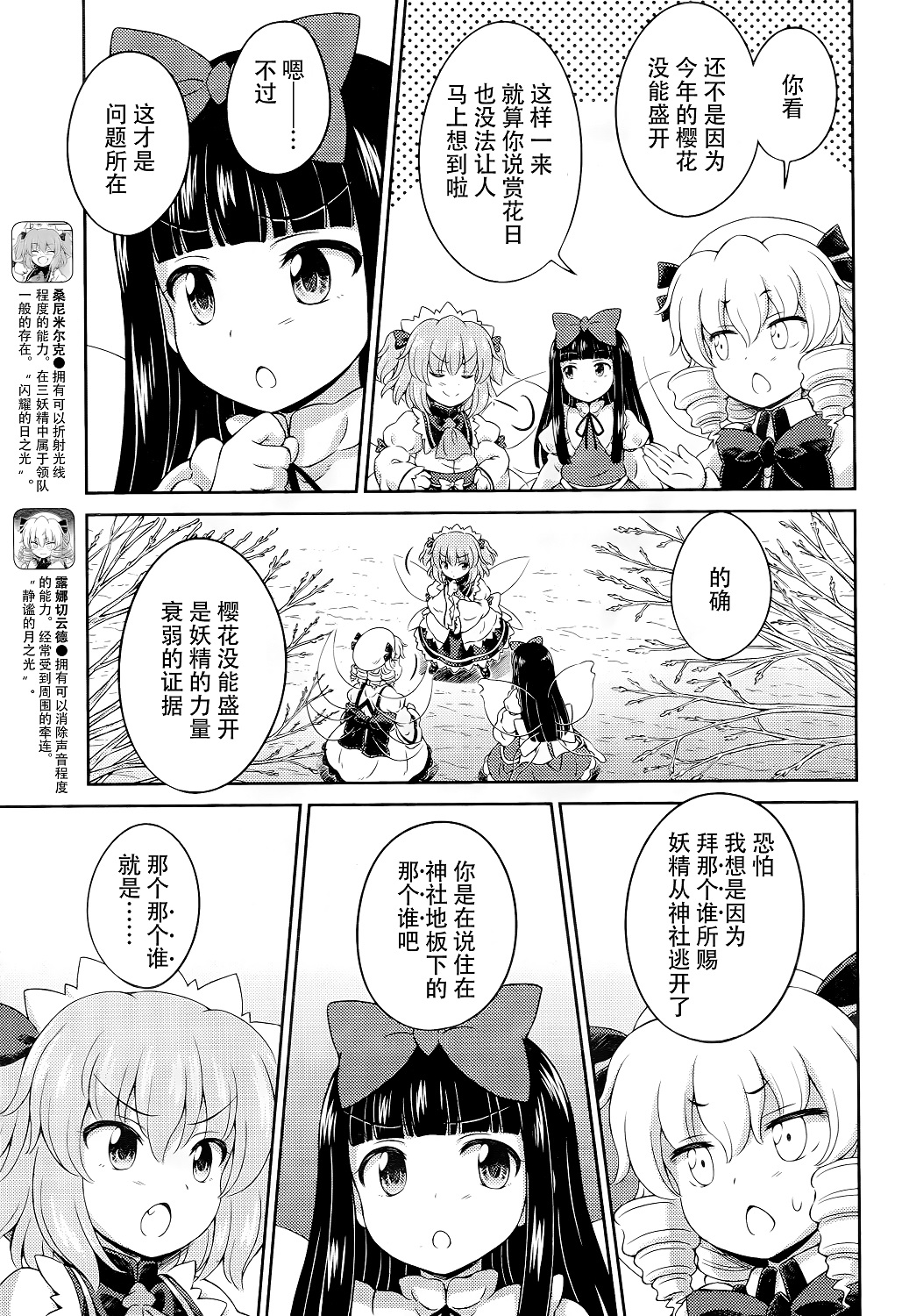 2.博丽神社下方本来就没住妖精,三月精认为皮斯的入驻甚至导致神社边上樱花树的妖精也被吓跑了,而且三月精并不认得后者;