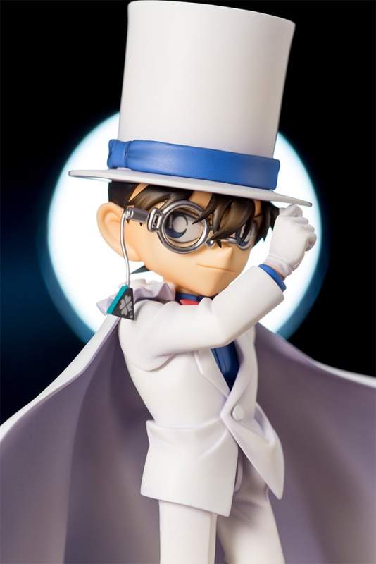 這套白色西裝以及白色高禮帽跟斗篷還有單眼眼鏡辨識度非常的高,很明顯就是怪盜基德(怪盜小子)的招牌服裝!而其實柯南也不是第一次穿上這套服裝,之前也曾經推出過景品立體化模型等,這次可是跟壽屋合作的超精緻柯南怪盜