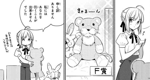 看到了這一幕的金閃閃,決定憑藉著自己外掛般的超高幸運值抽中這個獅子玩偶送給Saber。
