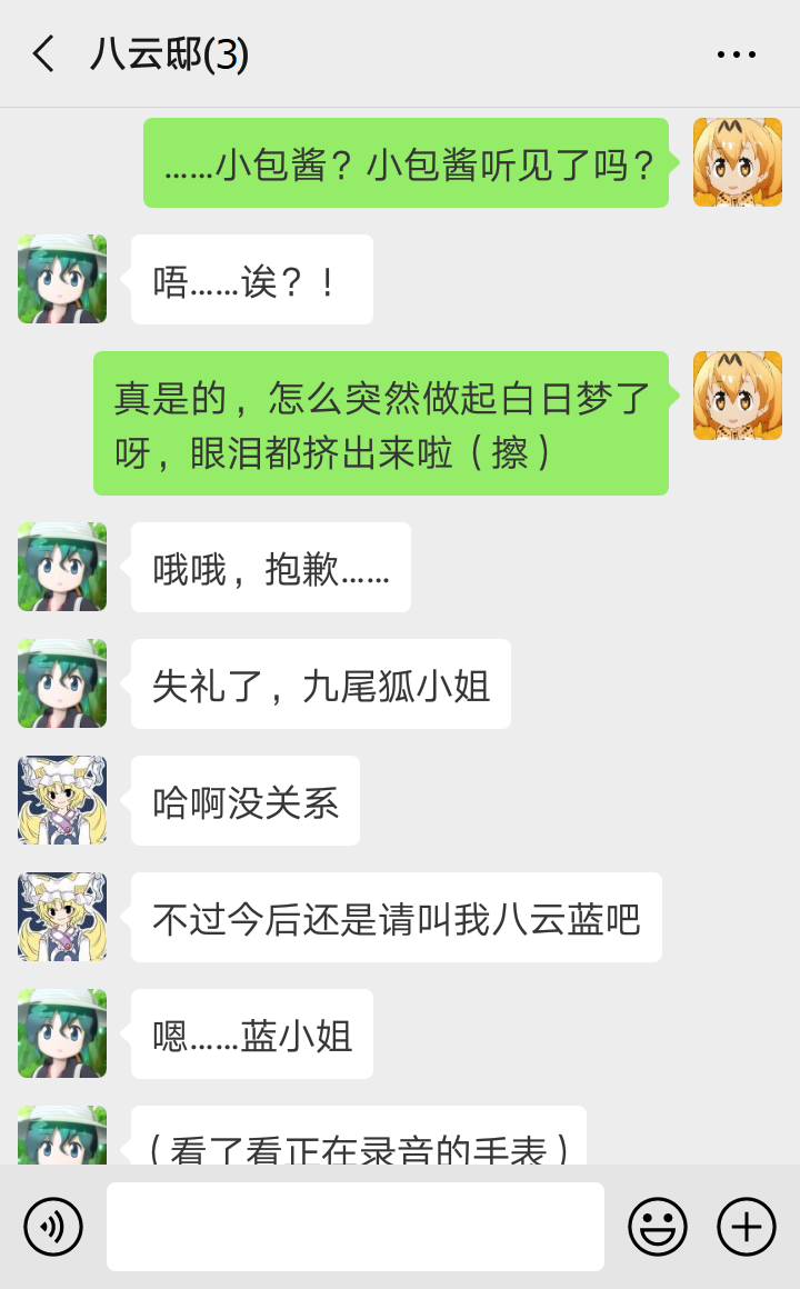 在此之前,为免引发恐慌,妖怪进入村落时会隐藏所有人外特征,铃仙戴斗笠买药就是个例子。作为妖怪贤者的式神,蓝当然会遵守这约定俗成的规矩,所以当时背后藏不住的九尾,令前来接送的她不得不止步村外。