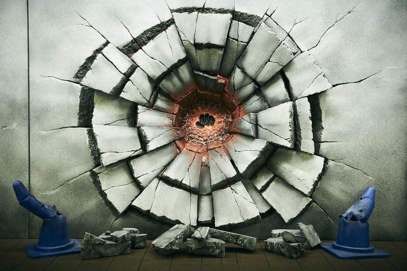 這次的宣傳企劃是以「Jump英雄發大招在牆上轟出來的戰鬥痕跡」為題,由左至右分別是《七龍珠》孫悟空的「龜派氣功」、《航海王》蒙其·D·魯夫的「橡膠火拳槍」以及《火影忍者》漩渦鳴人的「螺旋丸」在牆上打出來的巨大裂坑。