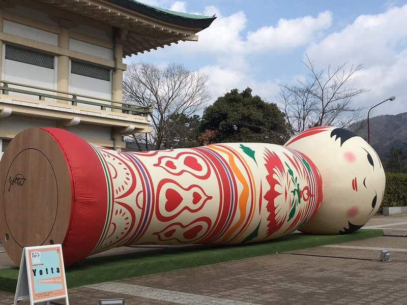 突然降臨京都的巨型木芥子,出自現代藝術團體「Yotta(ヨタ)」的山脇弘道之手。高12m寬約4m的巨型木芥子「花子」是吹氣而成的氣球,配合京都當地文化活動「ヨタの鬼セレブレーション」特別展出,不過也因為它太優秀的拍照效果而在推特上瘋傳。